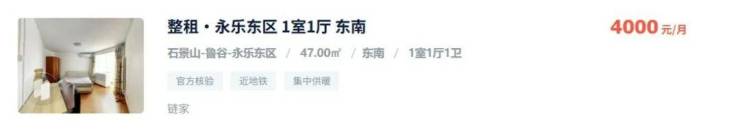 以石景山区永乐东区一套47平的南向一居室为例,成交总价约120万元,几乎可以全款,贷款就算按最低15%做,月供也就4300元,而该房屋的市场月租金能达到3300元左右,年租金收入约4万元,租金回报率超过3.3%。