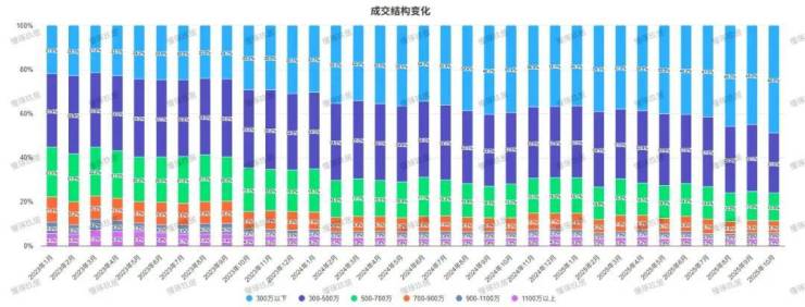 300万以下房源从年初的36.7%飙升至10月的48.8%,
