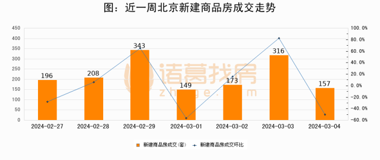 【北京成交日报】03月04日新房成交157套、二手房514套;涨价房源180套