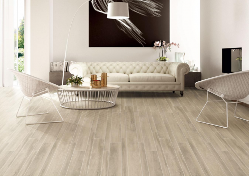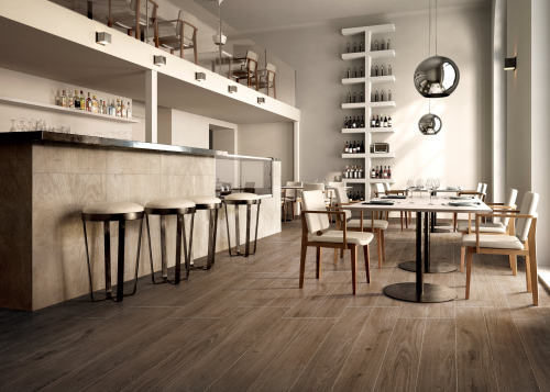 木质元素被用在瓷砖表面,纹理脉络清晰而丰富。无论是暖色系营造出的清新淡雅,还是冷色系彰显出的复古情怀,从视觉和触觉上都打破了空间的冰冷和强硬,营造出一个舒心愉悦的品位空间。