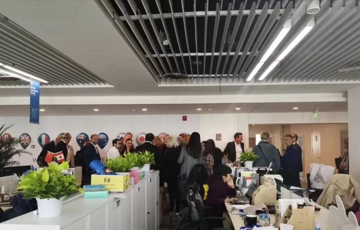 欧洲业务助理总监冷冰首先带领考察团成员参观链家总部,感受企业文化。