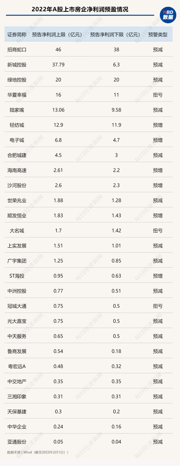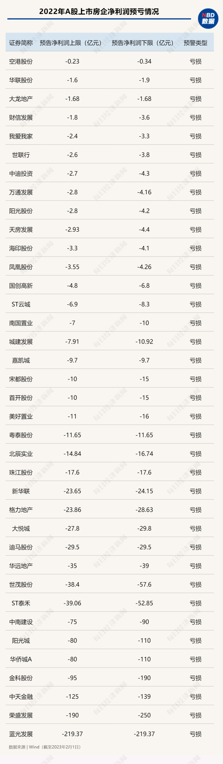 65家房企披露2022年业绩预告:超4成预喜,36家企业预亏总额超千亿