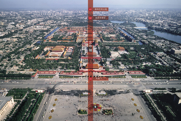 中轴当然取中庸之道,不偏不倚,不问西东。东方文化里的皇权属性,在这个中字上得到较大化表现,中轴以一竖线,表达了世界唯心的城市建设意义。