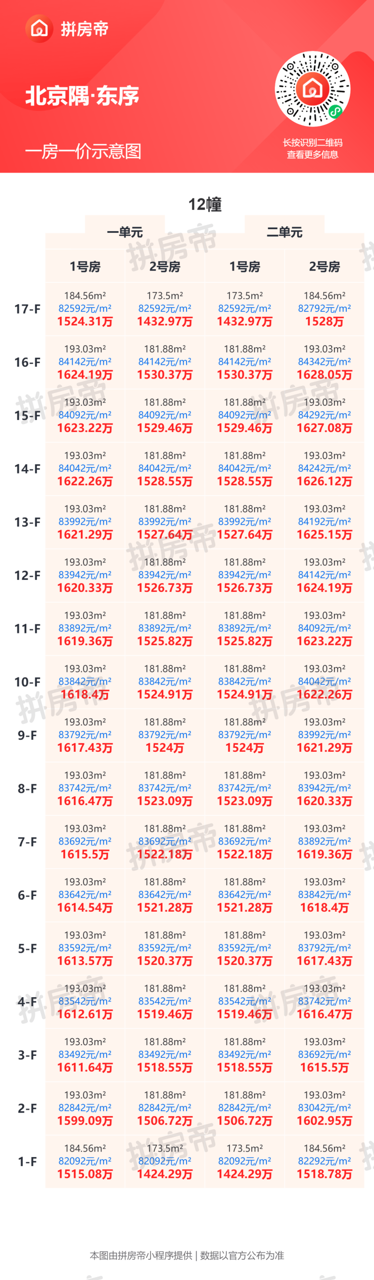 12# 户型:181㎡、193㎡ 得房率:81.96% 共17层2个单元 2梯2 户 68套