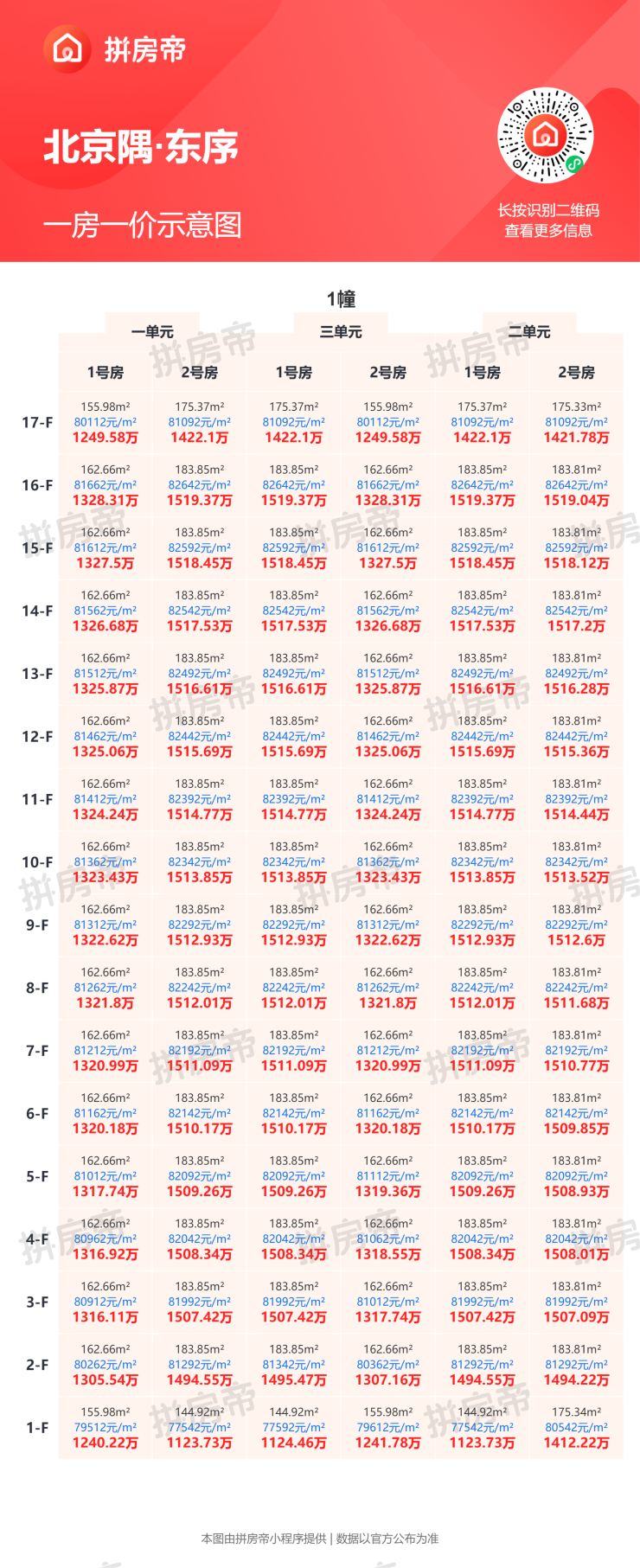 1# 户型:183㎡、162㎡ 得房率:81.03% 共17层3个单元 2梯2 户 102套
