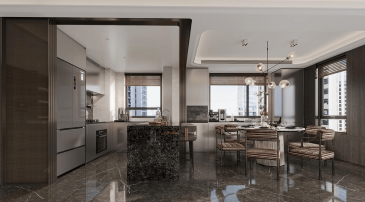超大方厅融合LDK一体布局,营造促进情感交互的家庭共享空间;打造以厨房为中心幸福厨房,不仅设计了深U型双接触面的中西双厨场景,还引进全球名宅重要的家庭交互节点——岛台。清晨一杯咖啡,夫妻间聊聊今日的安排;带孩子感受插花艺术,尽情享受亲子时光的融洽,万般美好被一方岛台打开,与我们一起探索更多生活方式的美好。