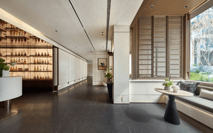 穿过连廊抵达「湖光缦舍」泛会所,观萃以五大私享空间为容器,盛放圈层共鸣的精神场域。恰如东京安缦将「场的艺术 间的时空」哲学融入观萃生活场景: