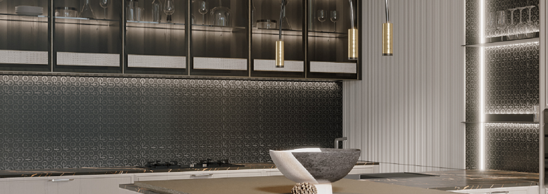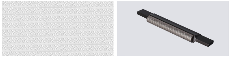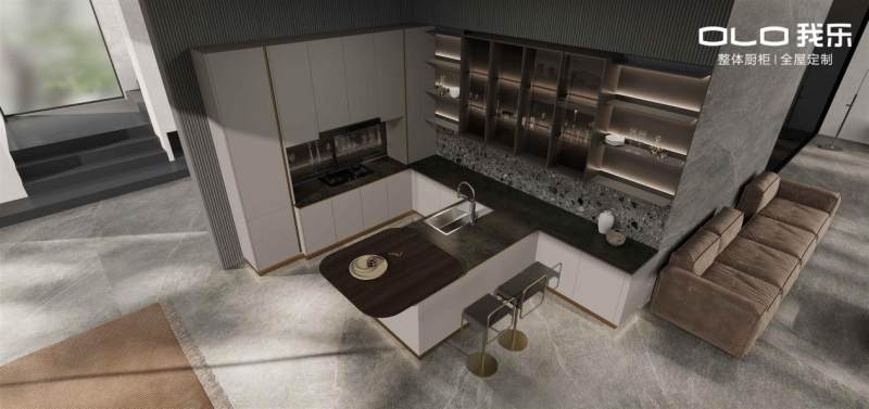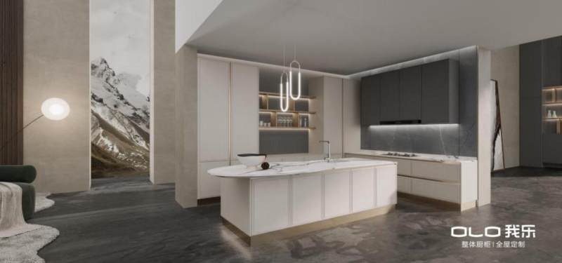在设计方面,设计师在洛亚系列的背景板、浮雕门板和金属拉手都融入了我乐创意字母olo的延展图腾设计,这三个字母则是我乐家居的英文缩写。独特的花纹体现,不仅是品牌属性的强化,更赋予了洛亚橱柜一种独特的时尚感。