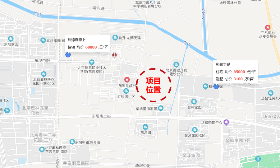 · 北侧过了坝河,距项目直线距离不到1公里为北京市排名前列中西医结合医院(东坝院区),同样也是一所三级甲等医院。