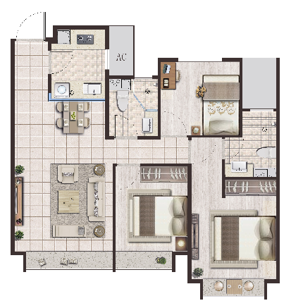 D户型为四居两卫,南北通透,整体方正;双卧朝南,飘窗,主卧为套间私密感强;北向两个次卧之间为非承重墙,可根据需求自行调整。不论是三口之家还是三代同堂的二孩家庭,都可以做到居住舒适。