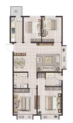 A户型为南北通透,全明户型;两个北向次卧之间为非承重墙,可以根据需求自行调整;次卫干湿分离,利用率更高;南向两个大飘窗。适合居住人口不同生命阶段的居住需求。
