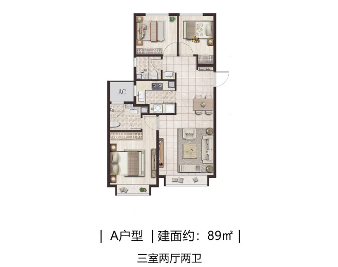 户型方面,面积段集中在72-145㎡,满足了从刚需到改善的全需求段!主力产品为89㎡三居,占比达到70%以上。