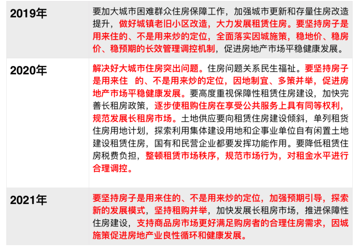 陈文静指出,本次会议再提“房住不炒”,延续近年来中央经济工作会议中房地产行业的基调,但本次“房住不炒”相比以往有一定后移,放在了具体工作的后面,亦表明“房住不炒”是中长期坚持的房地产行业定位。