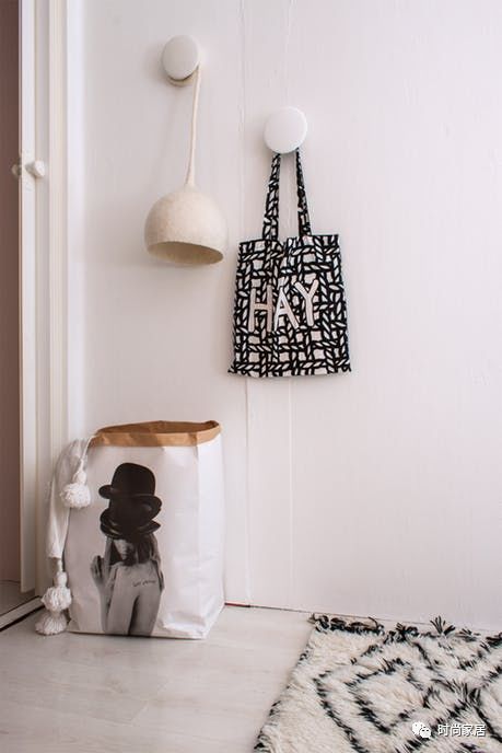 ▲不一定集中设置,圆点挂钩随意安置在各处墙面,好看也更实用。