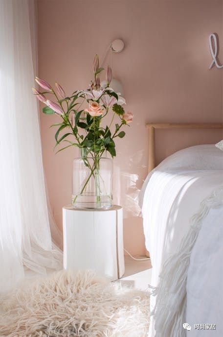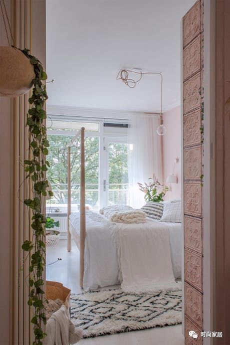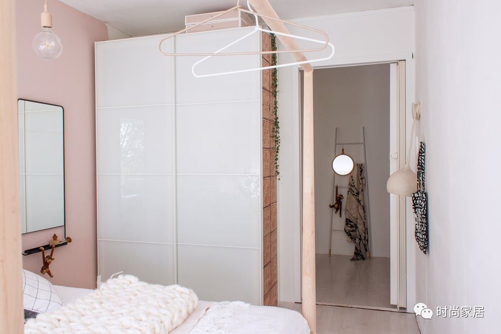 ▲“很多白色,一抹粉色,浪漫,轻木”,Sharita的标志性风格在房间里随处可见。
