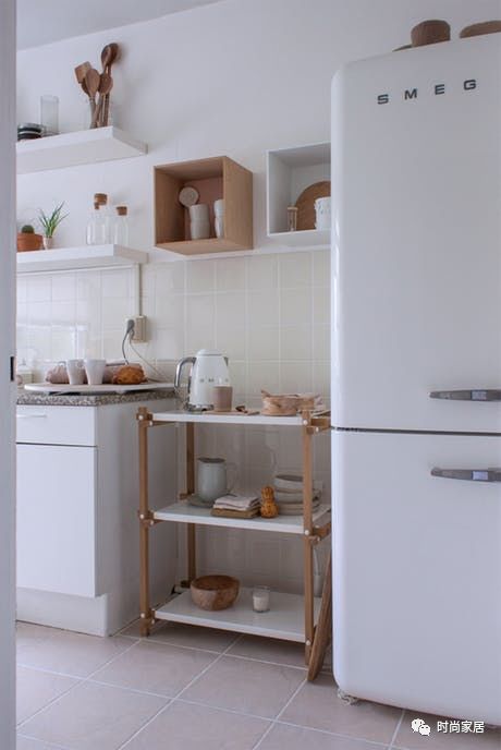▲小清新的厨房还是留有一点点遗憾。如果有机会,厨房可能会有所不同。全家人真的想要一个更开放的厨房,感觉就像是生活区域的延伸。Sharita 说:“加设黑框玻璃移门是不错的计划,谁知道呢,在不久的将来……”