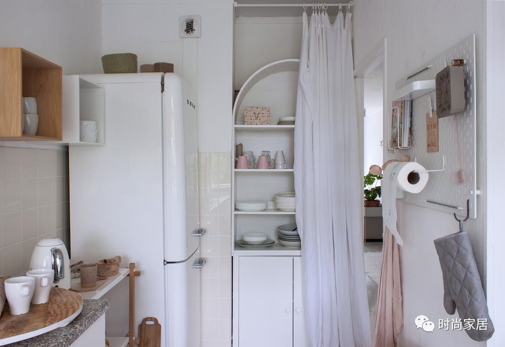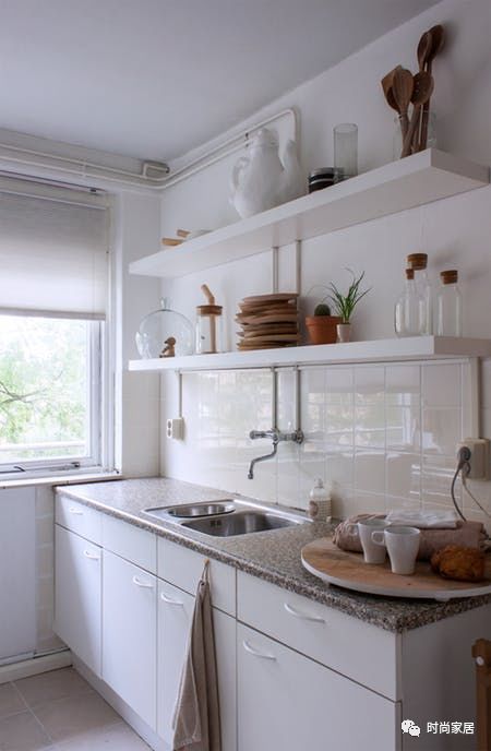 ▲Sharita有一个让家变美的秘诀:必要地留空和留白。在油烟较少的料理台一边,用搁架替代厚重的收纳柜,空气和风都灵动起来。