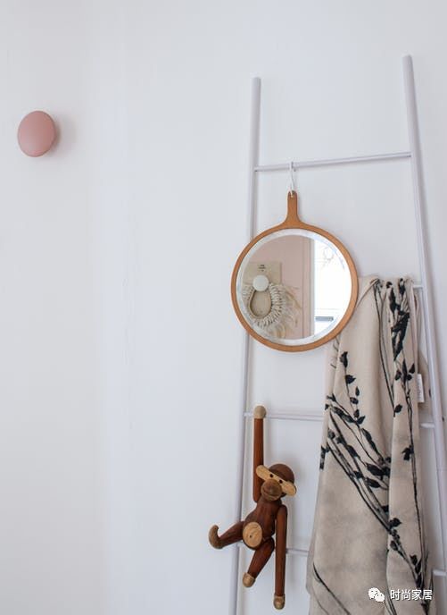 ▲简单的白色梯子提供了一种有趣的方式来收纳和展示漂亮的随手物品。
