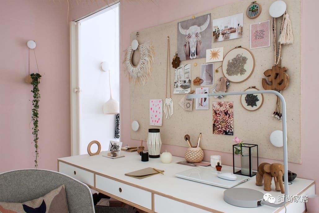 ▲Sharita选择了两面粉色的墙面,搭配一面采光很好的白墙,开放式工作室看上去精致而通透,利用得很棒!