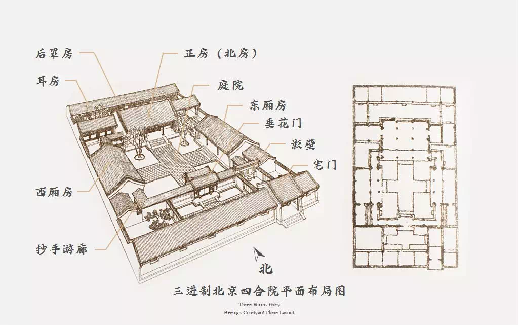 源于合院住宅内向稳定、秩序井然的特点,其四周闭合、内含郎阔庭院,自成一方天地的功能与意境,已然高度契合中国文化礼序。由此,中国式合院居住系统在历史中不断得到强化,而北京四合院历经改良与再造,已然成为合院居住系统中高度完备又内涵广阔的一种。