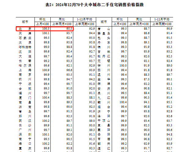 随着2024年10月-12月成交起量,北京二手房价格连续3个月环比上涨。