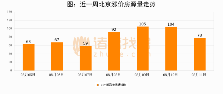 根据诸葛找房数据显示,北京24小时涨价房源量为78套,较08月10日减少26套,环比下降25%。与此同时,涨价房源占比小幅回落,对于购房者来说是一个入市窗口期,购房者可抓住时机入市。
