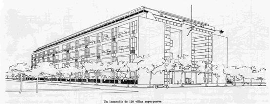 今天我讲的排名前列个案例是1922年的不动产别墅(Immeuble villas),是柯布和一个朋友在一次午餐会上画在餐巾纸上的方案,但是这个项目从来没有建成过。