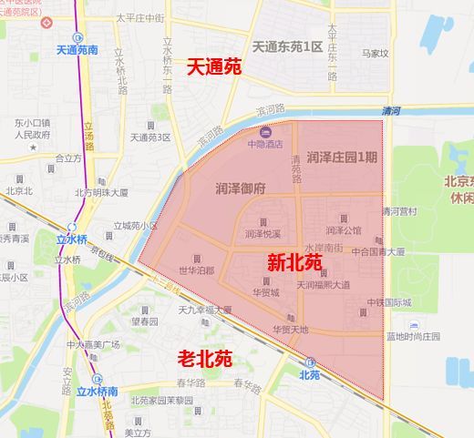 新北苑位于13号线北苑站北侧区域,其实这个地段当初挺不被看好的,10年前大家都觉得这太远了,比老北苑还远,但时间证明一切,经过10多年的发展,新北苑已成为亚奥板块一个成熟的宜居居住区。目前这一区域内共7个住宅小区,3个别墅区,大部分是10年后开建的,12年13年集中交房,次新为主。润泽悦溪周边的世华泊郡和国际城有回迁房,是为当年商品房配建,与商品房同院共享园林配套。