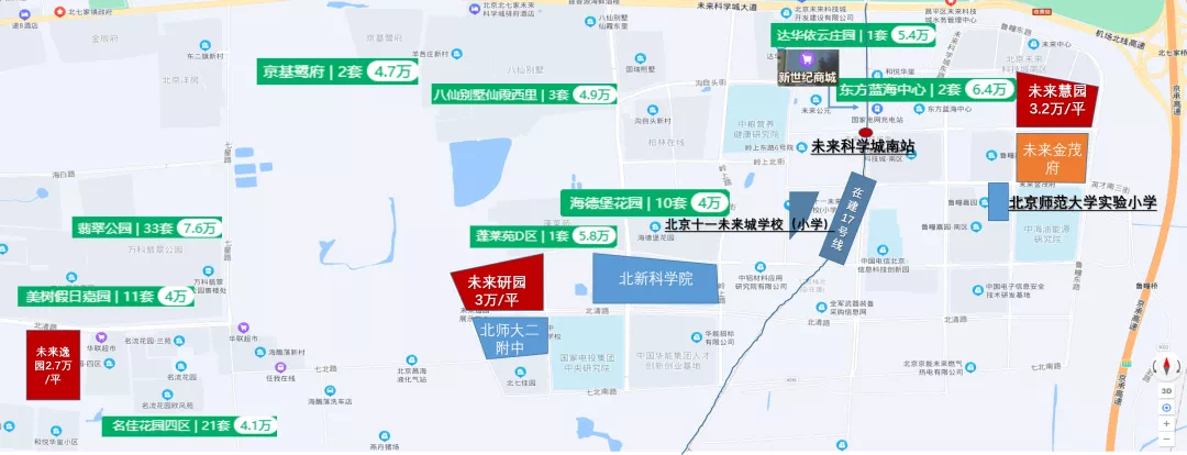 未来科学城这片整体来看,未来慧园周边新房项目居多,二手房均价6万左右,未来科学城南区已有商家入驻,南侧两座小学,西侧不到千米有在建地铁站,位置在三个项目中相当不错。