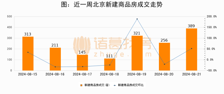 【北京成交日报】08月21日新房成交389套、二手房721套;涨价房源132套