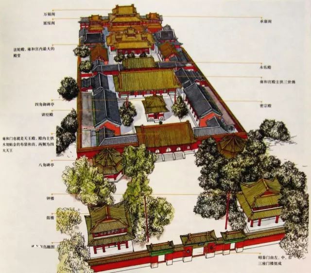 因此雍和宫主要殿堂原绿色琉璃瓦均被改为了