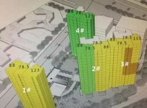 其中,棕色是16套回迁房;黄色是限竞房,预计中签率低于8%。绿色是开发商自持的租赁型住宅,房源有86套。