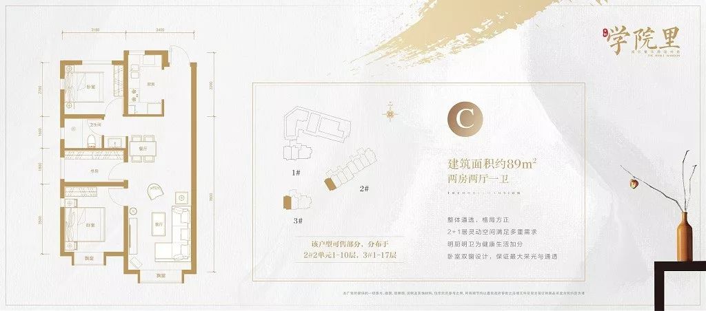 89㎡ 两居 位于2#楼2单元1-10层,3#楼1-17层, 共27套,总价约为760万。