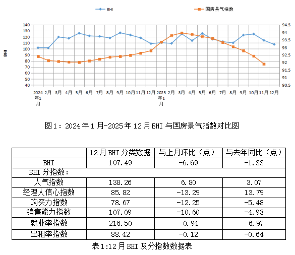 全国建材家居景气指数BHI12月份为107.49,环比下跌6.69点,同比下跌1.33点。全国规模以上建材家居卖场12月销售额为1179.60亿元,环比下跌9.00%,同比下跌4.40%;2025年全年累计销售额为14411.45亿元,同比下跌3.33%。