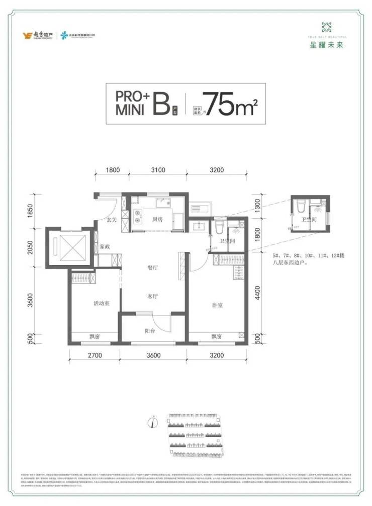 另有少量70多平米的顶退变异两居室,满足更多刚需。