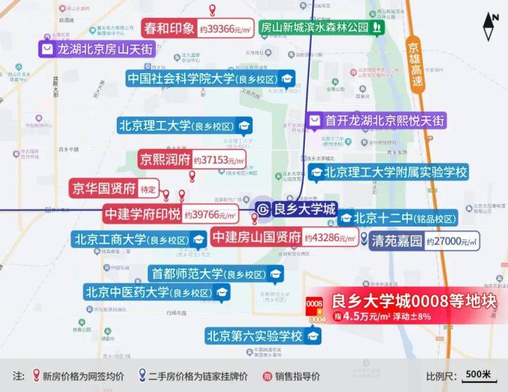 京华国贤府距离良乡大学城西站300米,指导价4.5万,最终的成交单价能到3.6万,听说买房还送电器。更好位置,更多赠送,价格不变,不过户型怎么说呢,感兴趣可以后台回复「京华国贤府」自己看看……