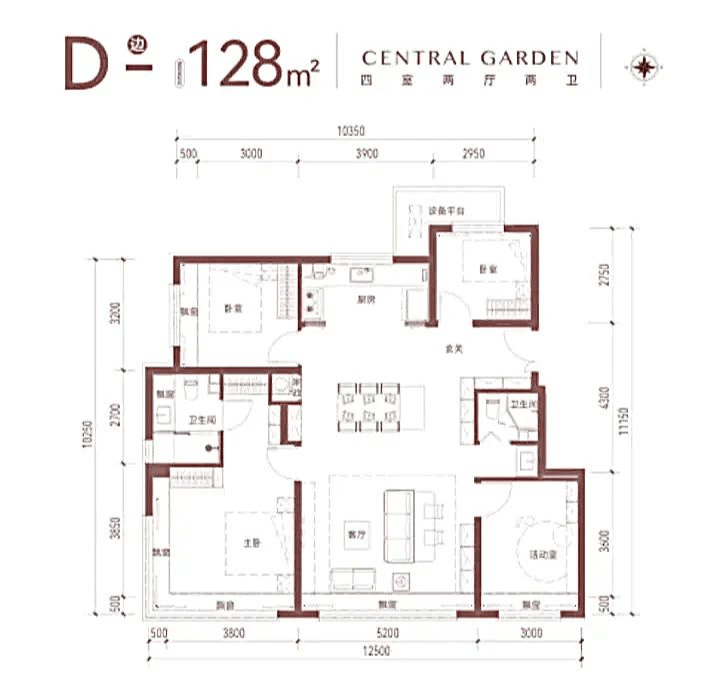 方正的四叶草户型,独立家政间收纳空间拉满。