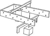 下图展示了房子的三块主要结构:红色部分为两个钢构,顶层的混凝土墙是悬空的。