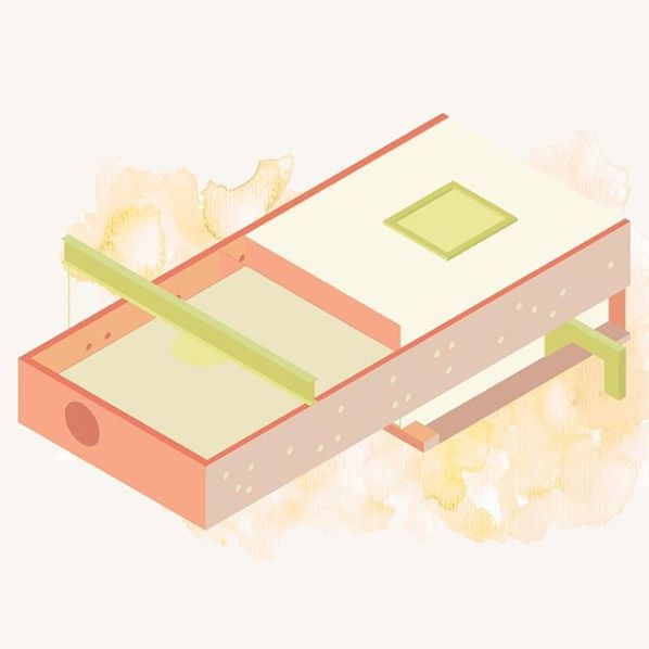 积木的每一层都是形状、大小不同的四方形「盒子」,较底层还有一块空地被围成了花园。