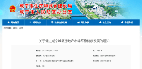 6月23日,咸宁市住建局等6部门联合发布《关于促进咸宁城区房地产市场平稳健康发展的通知》,其中提出实行购房补贴、加大融资信贷支持力度、加大住房公积金支持力度等8方面政策措施。