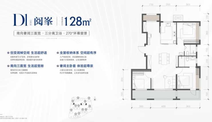 面积最大的是128㎡四居,南向三面宽,很通透,配有超大露台,“3+X”的设计也能让空间利用更加个性化,不管是改造成书房还是衣帽间都能更好满足用户需求