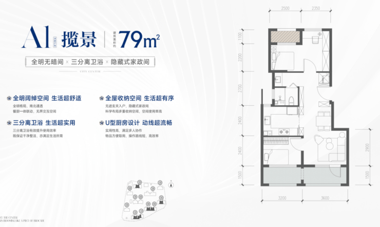 比如79㎡的户型因为有了将近10%的赠送面积才能做成三居,有玄关、落地窗,南向两面宽、U型大厨房,哪怕三居也不会太挤