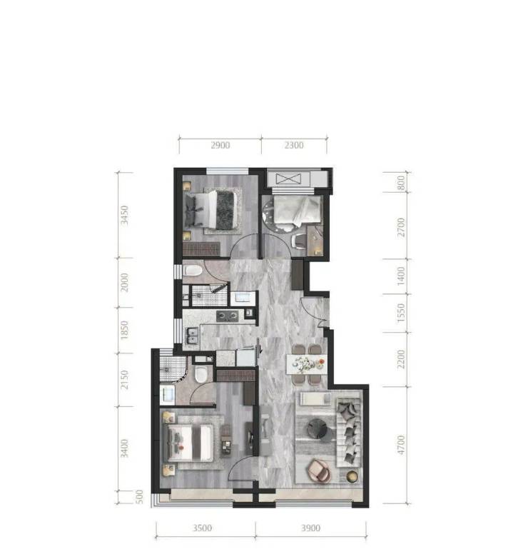 空间设计上,以居者实际生活感受出发,强调功能性。建面约98m²全能三居,通透全明户型,约3.9米轩朗横厅,超大窗墙比,带来通透观景居家体验;尊崇主卧套房,独立卫浴空间,自成一方私密天地;功能性三居室,匹配家庭生长周期,精致家居各有所乐。