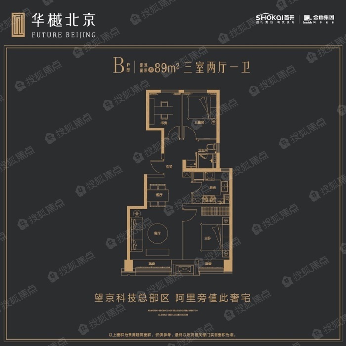 华樾北京由于是限竞房,价格受到监管限制,所以均价要低一些,但它的优势不仅体现在单价上,由于配备了89平小户型,总价不到700万便可以拿下。这在望京整个片区的新房市场上也比较少见。下面焦点君带大家看看这个小户型!
