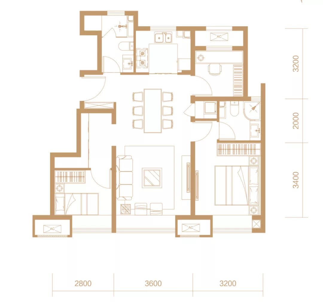 2019年初-2019年6月,代表项目有台湖金茂悦、万科城市之光东望等,产品出现了新亮点:如南北通透、全明户型、飘窗设计等。2019年10月至今,代表项目有禹洲朗庭湾、国誉府、京华雅郡等,产品进一步发展出格局方正、大面宽、三面朝南、双卫设计、独立餐厅等更符合人性化居住需求的特点。眼下,随着二孩时代的来临和后疫情时代的影响,市场上居住需求也在随之增加购房者对产品提出了更高的要求,倒逼着户型进行革新,满足较本质的居住需求。而有些开发商已经敏锐的捕捉到了信号,实现户型升级,打造出更受客户喜爱的住宅产品。虽然说89平三居的限竞房有50多个,但多在五环以外,且并不是所有89平三居都好,很多进深过长,进深面宽比大于1.5的户型客厅几乎没有充足光照,必须开灯。举个例子,以下户型进深13米,面宽6.8米,进深面宽比1.91,房子内部基本就是一个黑通道。