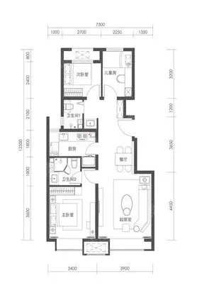 南向三面宽,客厅在中间,主卧、次卧在房子的东西两边,和客厅形成一个包裹型的结构。主卧是一个套房,有独立卫生间和衣帽间,进门的地方设计了玄关,将小户型的储物功能增加到优质,真的做到了麻雀虽小五脏俱全,不过美中不足的是卫生间是个暗卫。