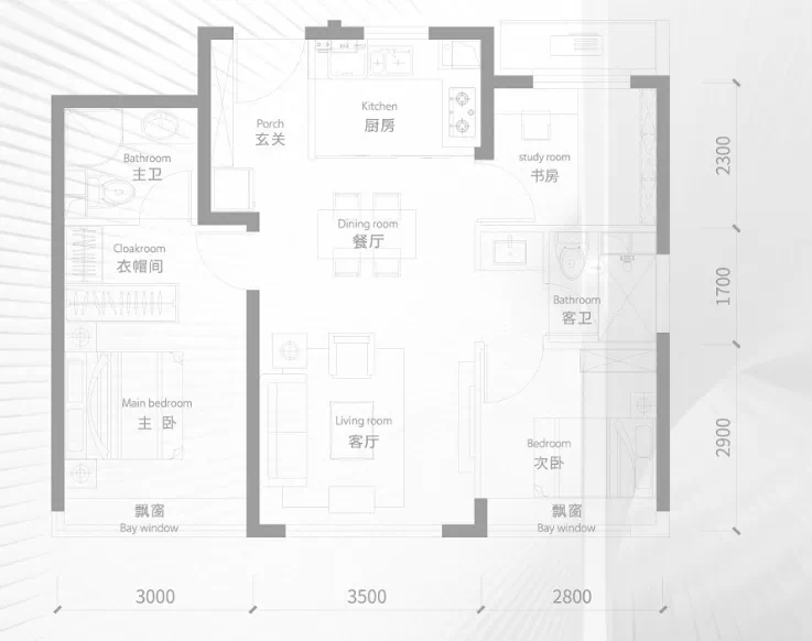 90平米的小三居,客厅双面采光,