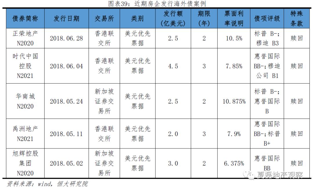 近期房企海外债政策收紧。4月19日,外管局表示,正会同央行研究完善全口径跨境融资宏观审慎管理政策:强化对重点领域和行业借用外债管理,房企和地方政府融资平台,除特殊规定外不得借用外债。发改委仍对房企境外发债备案登记,但对发债资金投向进行限制。5月11日,发改委和财政部下发《关于完善市场约束机制严格防范外债风险和地方债务风险的通知》,发改委有关负责人在答记者问中表示,规范房企境外发债资金投向,主要用于偿还到期债务,避免债务违约;限制投资境内外房地产项目、补充运营资金等。