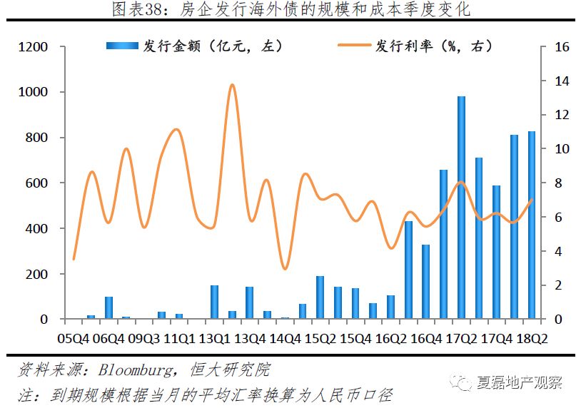 海外债融资成本从2016年见底后回升,2016年房企发行的海外债加权平均票面利率5.8%,2017年上升至6.8%,2018年1-6月初回落至6.4%。