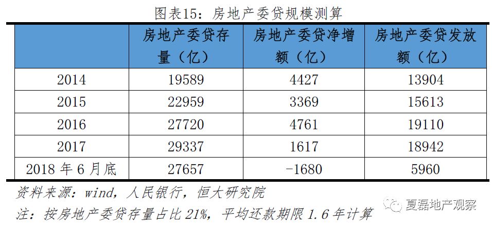 委贷资金多来自于银行理财或资管计划,期限在2年以内。按照1.6年的平均期限计算,2017年投向房地产的委贷规模为1.9万亿。